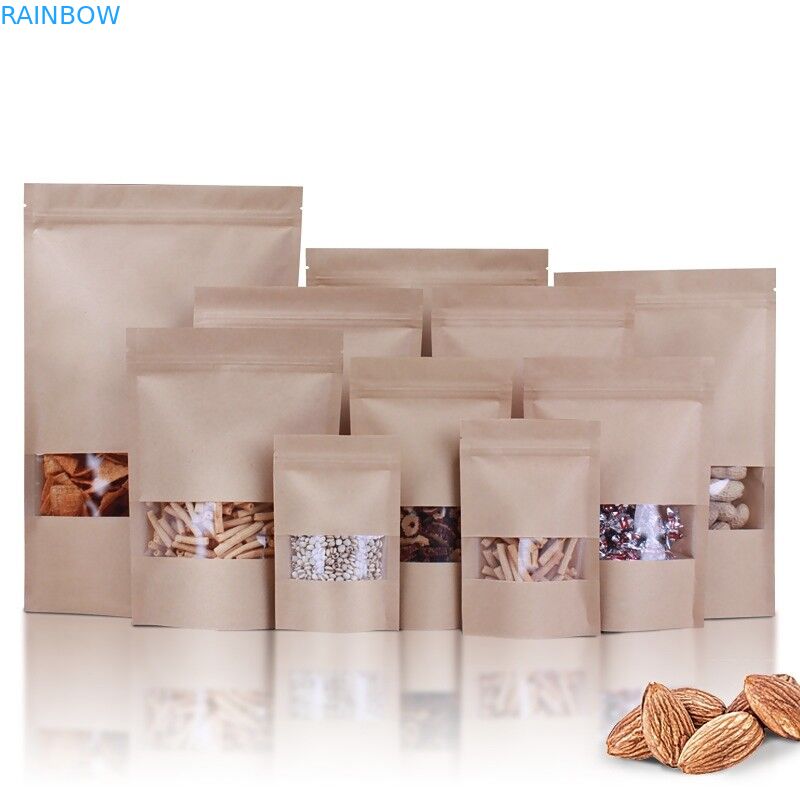 Saco Ziplock de papel Standup branco feito sob encomenda da embalagem do armazenamento do alimento do café do zíper do saco de papel de Kraft com janela clara