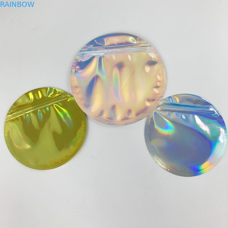 o círculo do holograma 3.5g deu forma a Mylar ensaca o empacotamento impresso feito sob encomenda do zíper da moeda ensaca sacos redondos holográficos